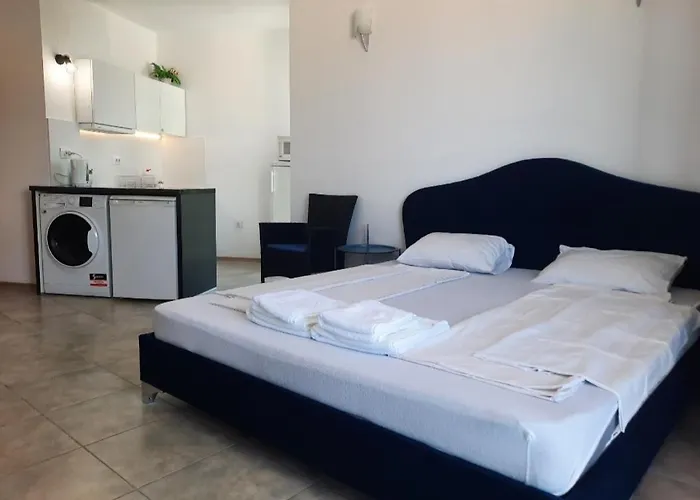 Az Apartament " Palas " apartman egy tengerparti szálláshely, 10 perces autóútra a Bedroom-partklub térségétől. Az apartmanban van egy teljesen felszerelt konyha, felszerelve elektromos vízforralóval, hűtővel és sütővel a vendégek kényelméért.